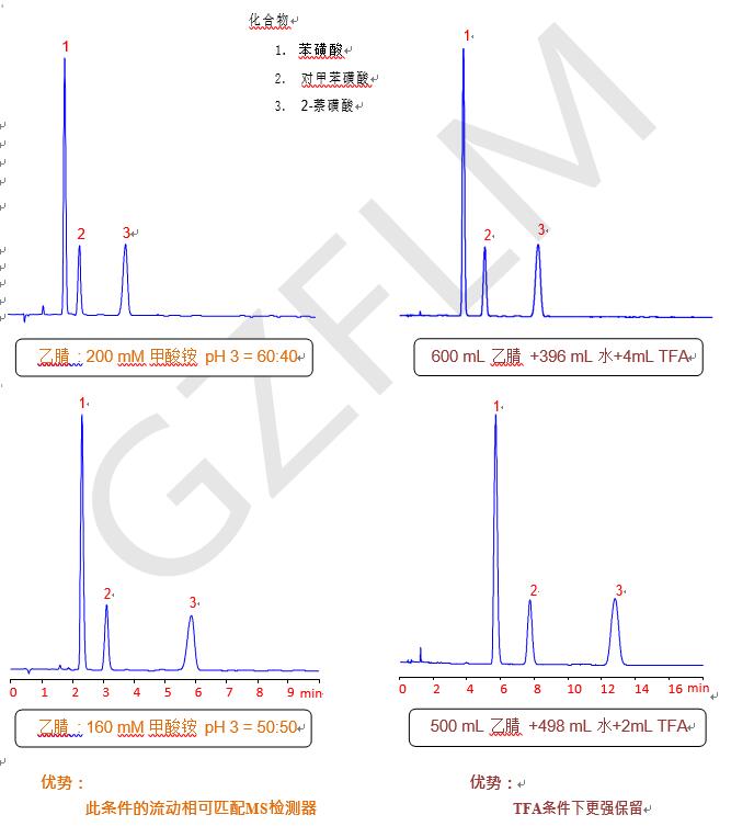 【菲羅門Comix色譜柱】苯磺酸、對甲苯磺酸和2-萘磺酸的高效液相色譜分離