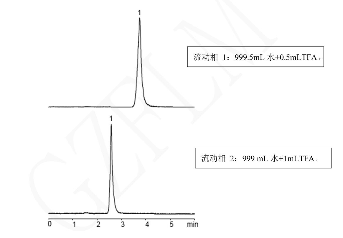 說(shuō)明:因條件所限,在 ELSD 下按上述條件對(duì)肼進(jìn)行分析。如果是 LC-MS 檢測(cè)器,TFA 可以改為 0.1%甲酸,或者用 10mM 的甲酸銨,并可適當(dāng)添加乙腈