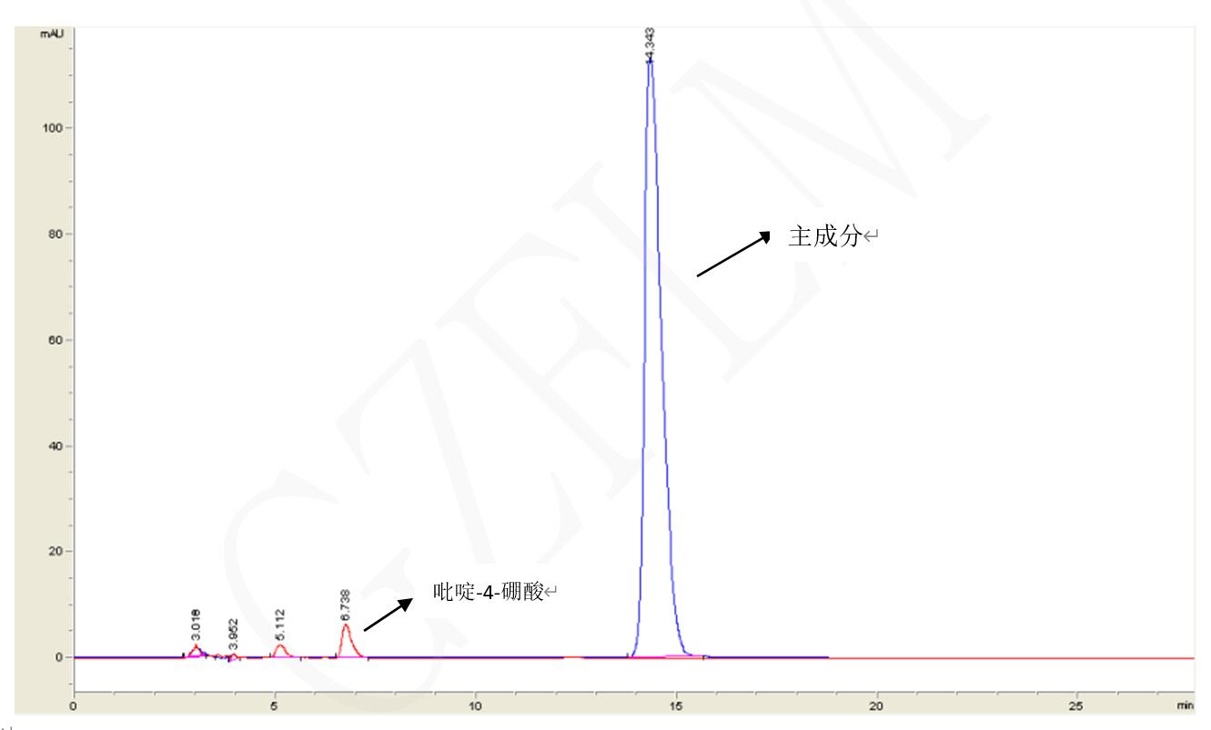 評(píng)價(jià):增強(qiáng)了吡啶-4-硼酸的保留,吡啶-4-硼酸在 C18 下沒有保留,且吡啶-4-硼酸與主成分不能分離。
