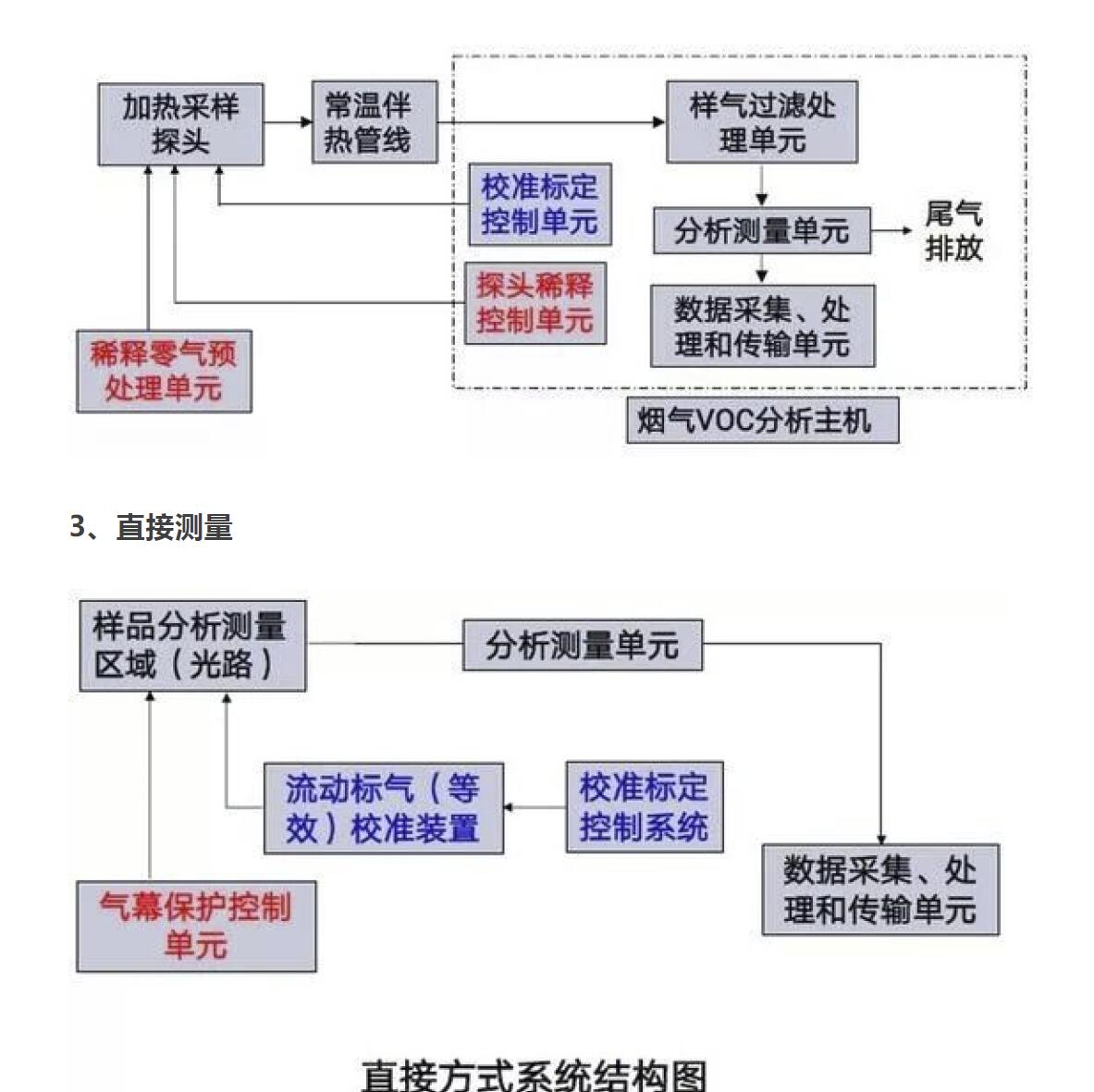 目前,根據(jù)采樣和測(cè)量方式的不同,VOCs檢測(cè)系統(tǒng)可以劃分為完全抽取測(cè)量、稀釋抽取測(cè)量和直接測(cè)量三種。