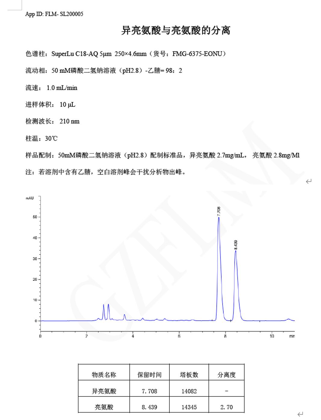 看,它可以將異亮氨酸和亮氨酸分開,而且分離度很不錯(cuò)哦!
