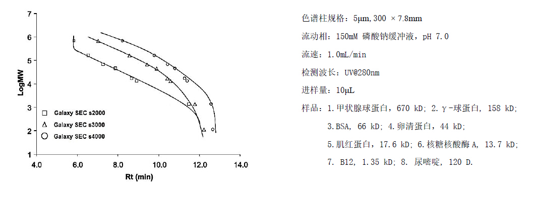 Galaxy SEC 柱蛋白分子量校正曲線: