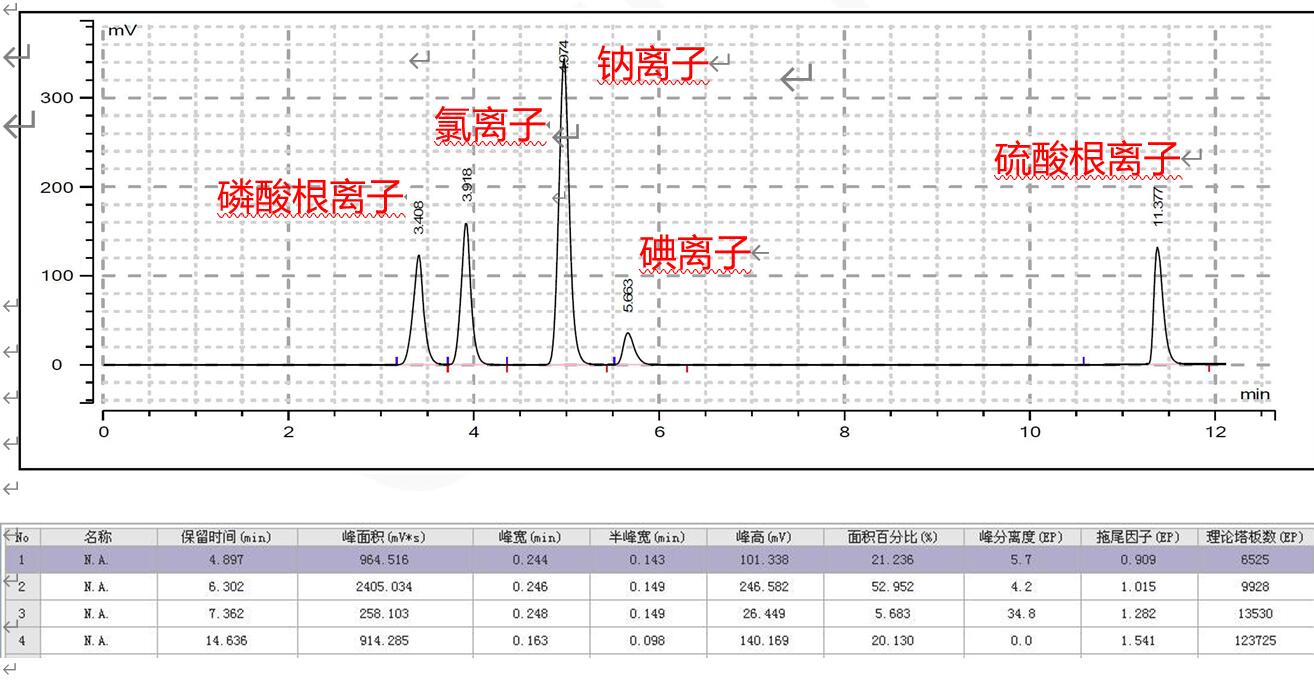 Comixsil ACRP液相色譜柱同時分離磷酸根離子、氯離子,鈉離子,碘離子和硫酸根離子