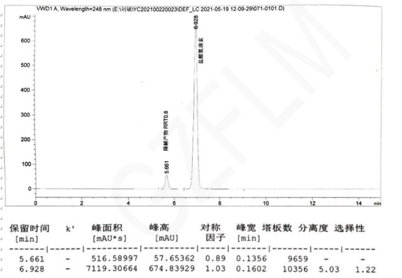 客戶評(píng)價(jià):鹽酸氨溴索與降解產(chǎn)物峰(相對(duì)保留時(shí)間約為 0.8)的分離度大于 4.0,符合標(biāo)準(zhǔn)要求。本案例及評(píng)價(jià)來自某省級(jí)藥檢所