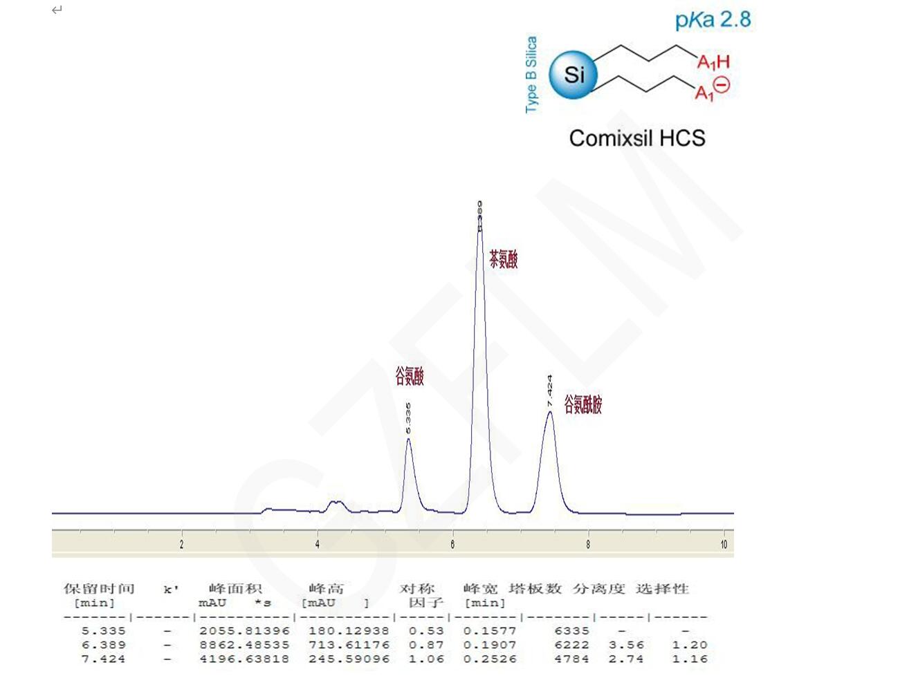 色譜柱:Comixsil HCS 5μ 250*4.6mm(貨號(hào):FMG-HCS5-EONU )