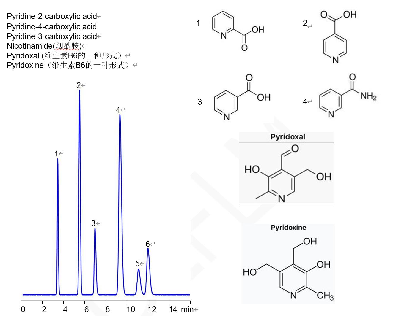Comixsil RP-100分析VB6兩種結(jié)構(gòu)以及與煙酰胺吡啶羧酸位置異構(gòu)的分離
