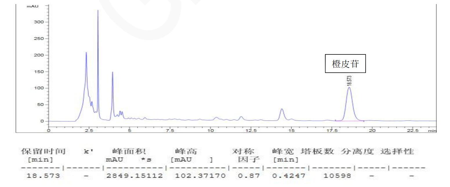 理論塔板數(shù)按橙皮苷峰計(jì)算不低于 5000