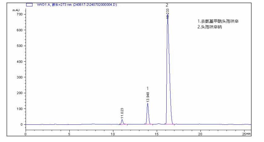 1. **系統(tǒng)適用性**: - 頭孢呋辛峰與去氨甲酰頭孢呋辛峰之間的分離度均大于**3.0**。 - 頭孢呋辛峰與后相鄰雜質(zhì)峰間的分離度均大于**2.0**。 - 這些參數(shù)均符合中國藥典的測試要求,為頭孢呋辛鈉藥物的質(zhì)量保證提供了可靠的檢測依據(jù)。