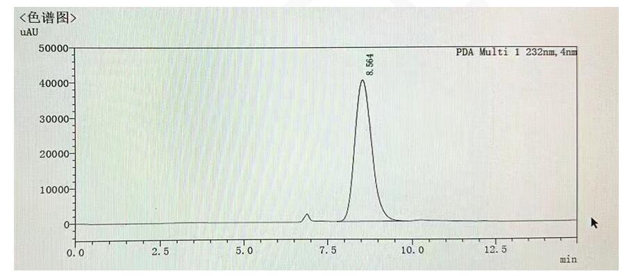 App ID: FLM-M250001 MARS MCa 柱對(duì)醫(yī)藥輔料及食品中透明質(zhì)酸鈉含量的測(cè)定 色譜柱:MARS MCa 10u 7.8*300mm (貨號(hào):FMH-1130-KONU) 流動(dòng)相:1%磷酸 流速:0.6 mL/min 檢測(cè)波長(zhǎng):232nm 柱溫:40℃ 樣品濃度:1mg/ml 進(jìn)樣量:20ul 方法參照?qǐng)F(tuán)體標(biāo)準(zhǔn): T/SNHFA 012-2021 食品中透明質(zhì)酸鈉含量的測(cè)定 稀釋劑:磷酸鹽緩沖液(pH6.0):稱取磷酸二氫鈉(5.1.1)27.4 g、磷酸氫二鈉(5.1.2)8.8 g,置1000 mL 容量瓶中,加水稀釋至刻度,搖勻,得 0.2 mol/L 磷酸鹽緩沖液。 檢測(cè)原理:來源于細(xì)菌的透明質(zhì)酸酶在適宜條件下,作用于透明質(zhì)酸鈉β-1,4 糖苷鍵,通過β消除反應(yīng)生成不飽和透明質(zhì)酸鈉雙糖(ΔDiHA),采用高效液相色譜法測(cè)定,外標(biāo)法定量。 色譜圖: