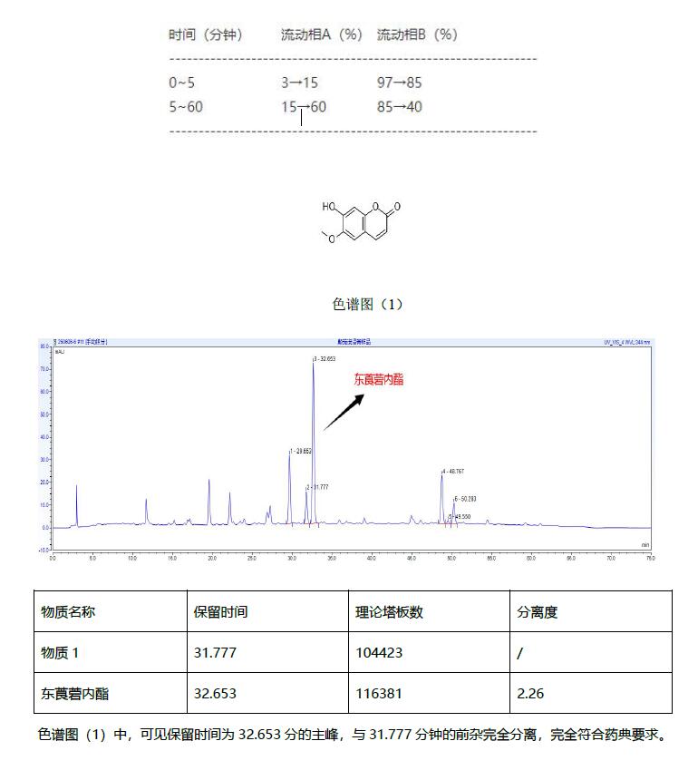 App ID: FLM-T250005 Titank C18-Plus 柱對顛茄流浸膏-特征圖譜的檢測 方法:《中國藥典》2020 版一部 色譜柱:Titank C18-Plus 5μ 250x4.6mm(貨號:FMG-0060-EONU) 流速:1mL/min 檢測器:UV 344nm 柱溫:25oC 樣品濃度:根據(jù)藥典配制進(jìn)樣量:10uL 流動(dòng)相:A:甲醇流動(dòng)相B:0.05%磷酸溶液 ![]() |