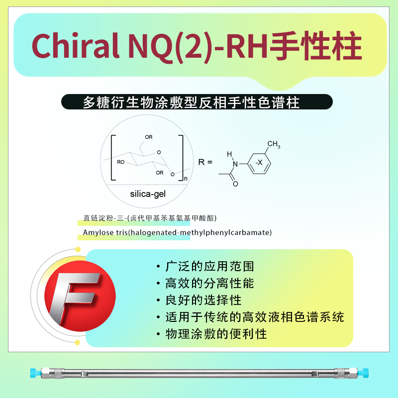 Chiral NQ(2)-RH反相手性柱的固定相為直鏈淀粉-三-(鹵代甲基苯基氨基甲酸酯)(Amylose tris(halogenated-methylphenylcarbamate))。這種固定相的獨特結(jié)構(gòu)使其能夠?qū)κ中曰衔镞M行有效的識別和分離。
