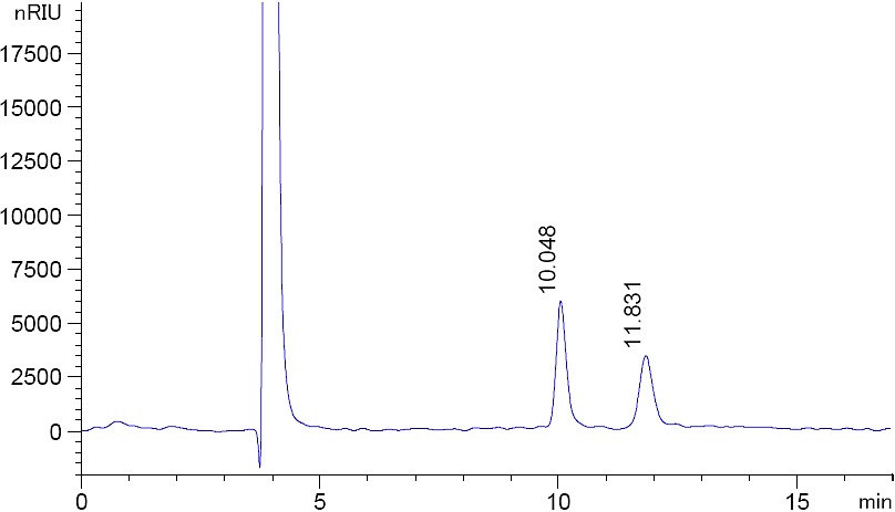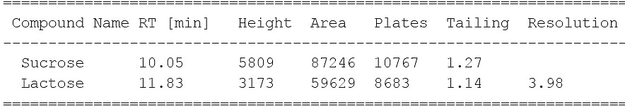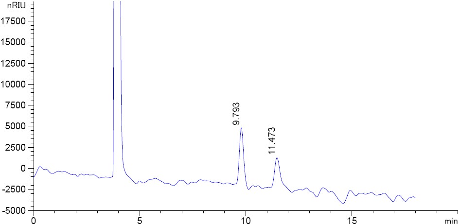 圖 2. 菲羅門MerCury NH2 乳糖專用柱在開放的環(huán)境下色譜結果