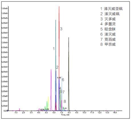 圖 2 添加水平為 0.05mg/kg 黃瓜中氨基甲酸酯類(lèi)農(nóng)藥多殘留檢測(cè)色譜圖
