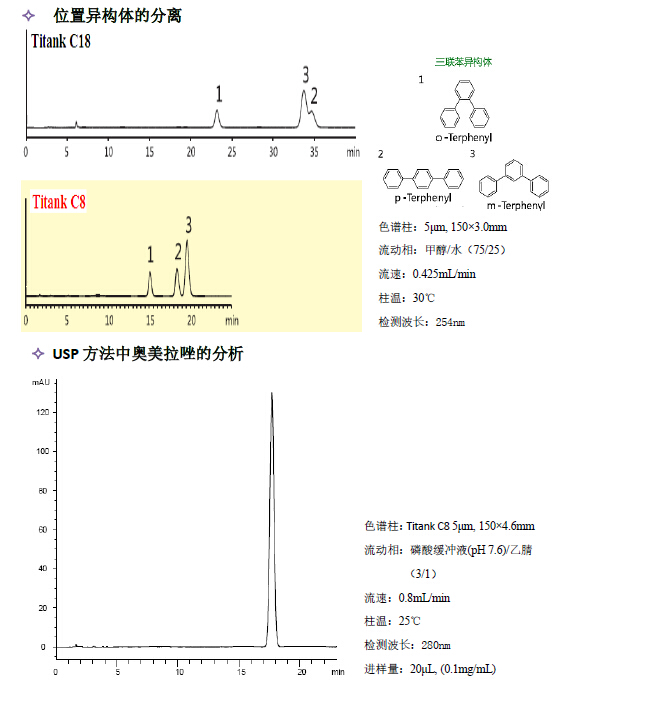 上圖顯示,對易于引起吸附、拖尾及易產(chǎn)生再現(xiàn)性問題的堿性化合物和配位化合物,Titank 系列能獲得穩(wěn)定的重現(xiàn)性。