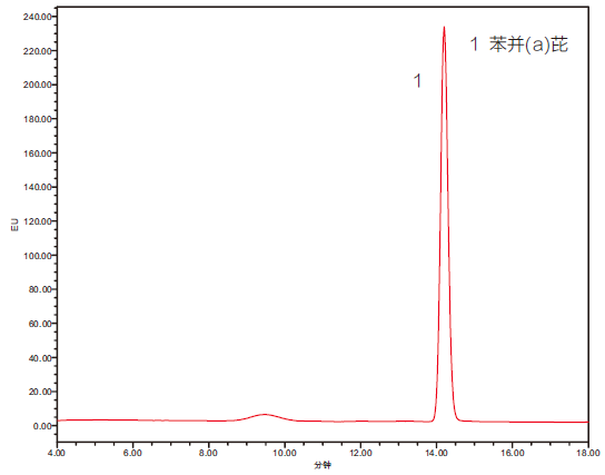2、添加水平為0.05 mg/kg植物油中苯并(a)芘檢測(cè)的液相色譜圖
