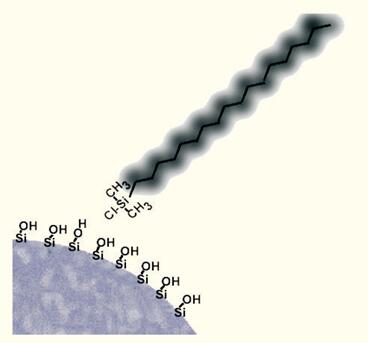 圖9. 通過利用有機(jī)氯硅烷將疏水性配體化學(xué)鍵合到硅膠表面形成了疏水界面。