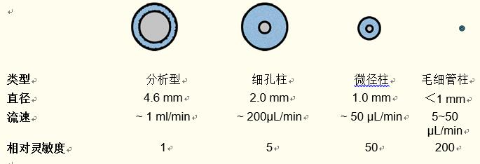毛細(xì)管柱的流速為1~50微升/分鐘,具有更高的相對靈敏度,約為分析柱靈敏度的200倍。
